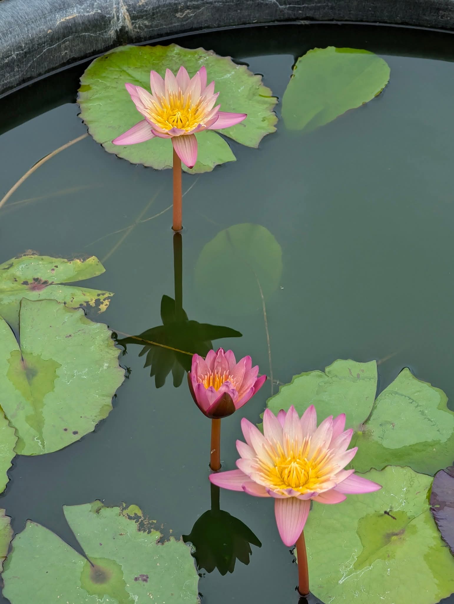 Do not overcrowd Mae Naeng Noi with floating pond plants or other water lilies. The crown and leaves must be exposed to light for optimal flowering.