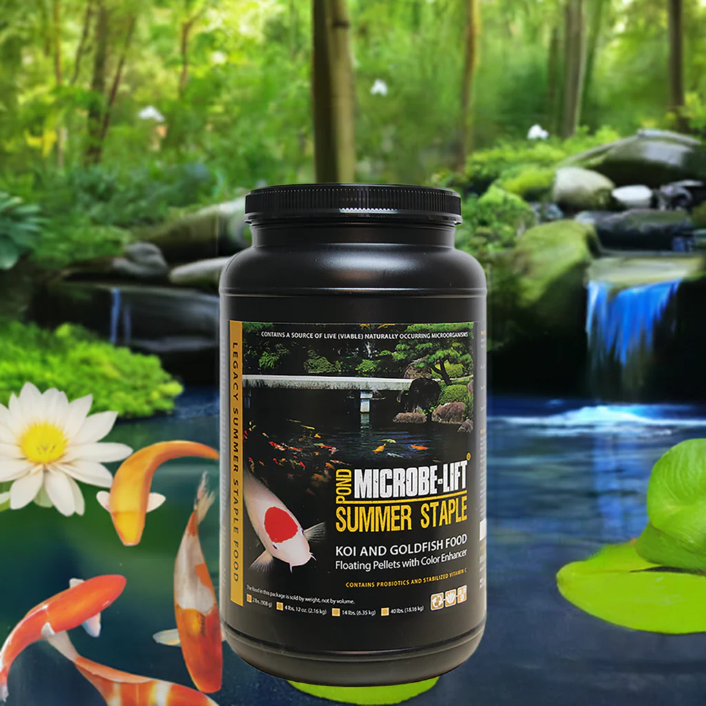 Microbe-LiftMicrobe-Lift Summer, Staple Koi Food, and fiber. Microbe Lift Summer Staple Koi Food will not cloud water. Microbe Lift Summer Staple Koi Food feeds a complete blend of fruits, greens, carbohydrates, protein, wheat germ, and probiotics to aid your koi and pond fish. Microbe Lift Summer Staple Koi Food contains 25% each of our most popular Legacy foods. Fruits and Greens, Summer Staple, High Growth and Energy and Immunostimulant.
