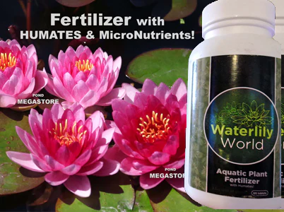 Fertilizer tablets for water lilies, lotus and almost all other aquatic plants! Fast acting fertilizer tabs that allow their nutrients to go to work quickly, giving plants a strong start and healthy diet. with a 10-14-8 NPK ratio. Plant tabs will not dissolve in the water before you get them in the plant containers. So easy to use, just push the tabs gently into the soil, 2 tablets per gallon of soil, every four weeks, spring until fall. 100% fish safe and will not cause algae. Keep your plants in optimum health and blooming beautifully. Use PondTabbs Fertilizer Tabs + Humates for vigorous growth and best bloom!